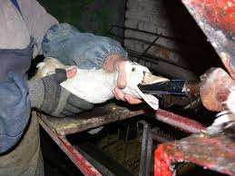 Have you ever heard of Foie Gras? It sounds like a French expression of romantic enjoyment but it is a scary reality of some farmed animals that are forced to eat over their daily needs. Under those farmed animals we will consider, in this case, the poor ducks and geese that are misused and abused so they can obtain a fatty liver or “foie gras” and the gastronomy can work on it and offer, to some sadists, some kind of special meal. According to organisations against animal cruelty, the foie gras is one of the worst thing done to domestic animals:“Ducks have pipes shoved down their throats to force the birds to ingest far more food than they would naturally eat.The animals generally undergo this abuse two or three times a day.The ducks’ livers become diseased, swelling up to 10 times their normal size, resulting in terrible emotional and physical suffering for these animals.Most of these ducks have difficulty walking and breathing normally. Many suffer ruptured organs and die. The birds are typically kept in small, filthy cages for most of their lives, unable to walk or spread their wings. They become so distressed they sometimes tear out their own feathers or cannibalize one another.”