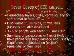 This means, there are certain areas where there is a big risk of being infected with this virus and that applies on woodlands habitats and the reservoirs with fresh, still water. Apparently, there are the ideal breeding places of mosquitos and their potential to come up with some of the deadly viruses. Especially  zones of concern are swamps, that are typical for the region of Florida and some parts of Mississippi River but the virus has been noted in New York area, Massachusetts and Michigan too.  When some person is bitten by mosquito that is a reservoir of 3 E virus, the evolution of symptoms should happen in 1-4 days after exposing. Some people develop the clinical picture almost like a flu and overcome it very easy but some end up dead or with severe brain deviations. It depends on the age of the patient and on the immune system. Everything starts with headache, high fever, chills and vomiting that is followed by disorientation, inflammation of the brain, coma and death. The virological  power of this infection is not to be underrated but to be analysed and studied so the cure could be eventually found. At this moment, there is no any cure or medical prevention but only supportive therapy and hospitalisation.  The doctors warn that only way for this sickness to be escaped is to take care of all preventative measures that are available.