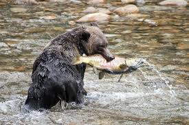 In addition, when grizzly bears fish for salmon along the coasts of north-west North America, they only eat the skin, brain and roe of the fish. In doing so, they provide a food source for gulls, ravens and foxes.