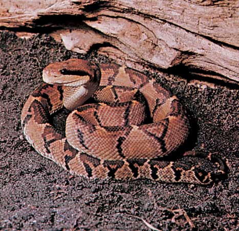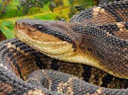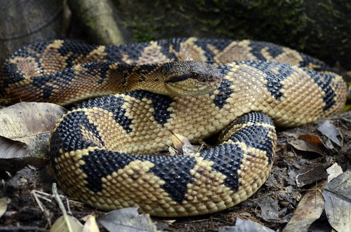 This beautiful snake lives relatively in remote corners of moist and tropical forests which covers usually the area from low mountains to the coastal settings. For bushmaster, the ideal habitat is one with an average temperature of 75F or 24C and not higher than 1000m. Unfortunately, due to the aggressive colonization of natural zones and destruction of ecosystems, the bushmaster share the destiny of other endangered species that are almost forced to move all around, searching for their peace. In those wandering, they meet up sometimes the humans and there is a conflict or, at least, it is said that those snakes are pretty much aggressive in their attack. Nevertheless, in spite of all those urban legends, the fact is that our master of disaster has no black portray in killing statistic with just a few human attack being recorded. This snake has a nocturnal activity which reduces the risks of crossing the roads with people and causing the fatal end.