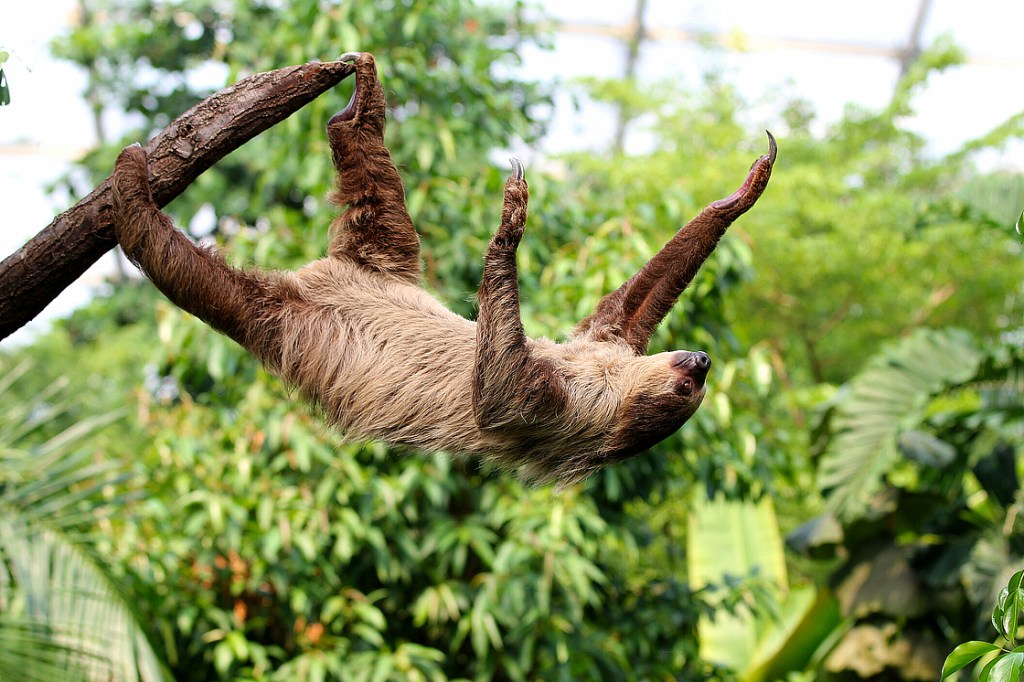 The nature had all its reasons to create sloths as the slowest mammals on the Earth due the fact that they need to conserve their energy. This further means that moderate sloth is moving about 40 meters, if ever, in a single day. Those furry animals found home in tall vegetations and high trees colonies because walking on the ground could be very difficult for their big and long claws. The zoologists can recognise two type of sloths: the two toed and the three toed sloths, depending how many of toes they do have in front limbs.