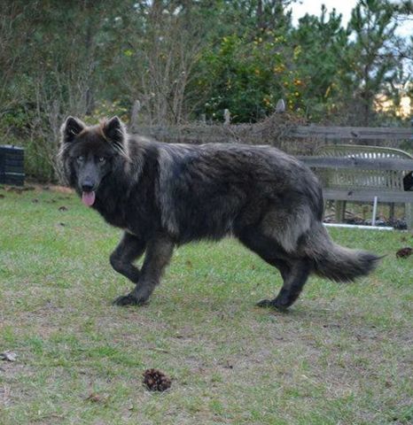 The newborn dog breed has no long history but very rich and devoted mission of Vicki Spencer, dog breeder from Palm Bay, Florida. Vicki has always wanted to have wolf-like dog that would keep warm heart and trainable nature of pure dog and magnetic attraction of wolf. That was, indeed , not an easy task. She knew that it would be challenging to create something that put an accent on only great attributes of both species, avoiding bad charactertitics. For her, it was very important to have a wolf- like dog with loyal nature, trainability, gentle temperament, good health, deep blue collar and sharp intelligence. On the other side, Vicky didn’t want that her dog goes into the direction of aggression, shyness and above all, she didn’t want dark eyes and large ears. I wouldn’t argue her pro and cons about this because I am interested in breed itself but personally, my opinion is that every single creature is beautiful just the way it is. Nevertheless, this woman was a one with project and she started breeding her own wolf dogs and she wanted F5 wolf dogs which means – they were five generations away from their wolf ancestors. We can call Vicky´s wolf dog as the mix of 8 different dogs but regarding their DNA, she never really exposed the formula, trying to stop copy paste breeders from unnecessary crossbreeding and money producing against the wellbeing of animals. Anyway, the science confirmed that in the DNA of her dog is definitely the Malamute and Husky dogs. When she was sure that her wolf dogs are ready and on the level she wanted them, she needed old-style and good German Shepherds without health problems and those that could help her wolf dogs blue line being maintained. After some time, she found such an example in France so she imported Passion and Jordan, breeding them with her own wolf dogs. Guess what ? The first litter of real Blue Bay Shepherds was born in March 2011, and the name was based on the birthplace, Palm Bay in Florida and the fact that they are blue German Shepherds.