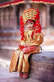 The process of searching for goddess is not easy and has the certain timeline. The girls that are in criteria are those who are with good health, no scars, no fear and with exceptional beauty. Once the most beautiful has been found, there is second election and examination for so called Battis Lakshan, 32-body perfections test. This means the following : “Body like a Banyan Tree; Eyelashes like Cow; Neck like a conch shell; Chest like a lion; Voice soft and clear as of a duck; Same horoscope as of the King; Sign of Serenity and Fearlessness ; Black Straight Hair and Dark Eyes; Delicate and Soft hands and feet; Thighs like those of a deer; Small and moist tongue. The children also must not be scared of blood and masked man. Every child is shown several sacrificed buffalo and masked men dancing on top of the blood. If a child shows signs of fear, she is deemed not worthy of Goddess Taleju’s power. The girl that shows courage amidst the blood and dancing is then selected as the next incarnation of Goddess Taleju.”