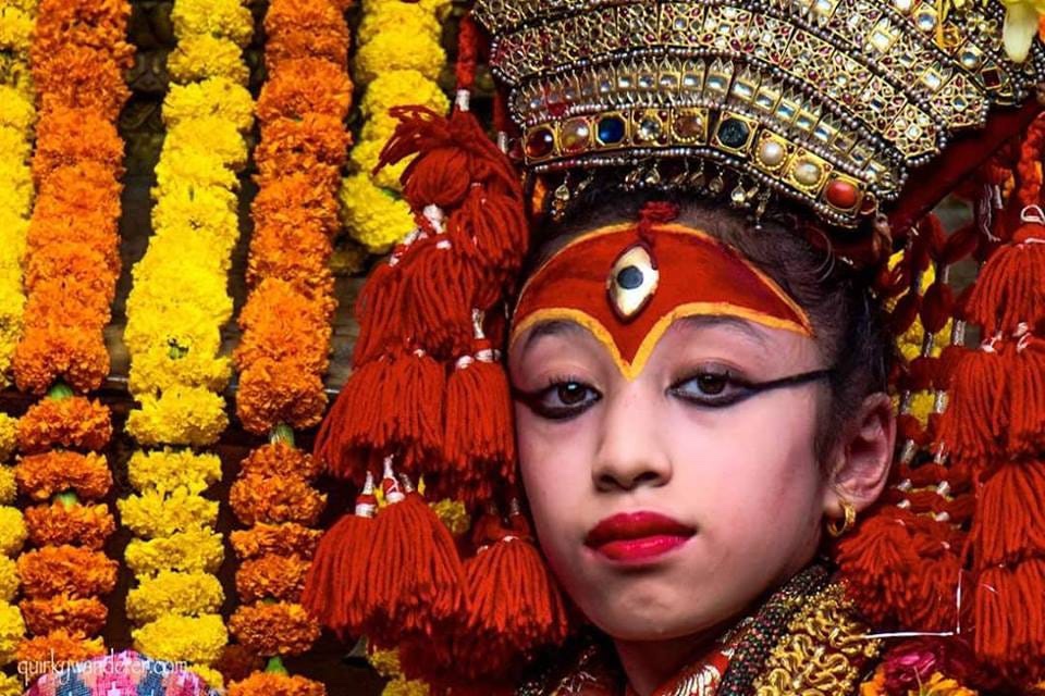 I have a big tolerance for each and every kind of religious dimension as long is it doesn’t step into the human or animal rights. The whole tragedy about animals that are sacrificed or children that are abused for the sake of some Gods, taught me to be free thinker and question everything so here I am , asking myself why Nepal is embracing, for so long , the worshipping of the KUMARI DEVI. Not many people are actually familiar with the institution of the child deity. However , the KUMARI is the only living goddess that is cherished by both Hindus and Buddhists. This is especially popular in the Katmandu Valley. So, who is this little goddess ? The name itself means VIRGIN. This means that the goddess is chosen among very young girls, pre- pubescent girls that are radiating the spirit of Goddess Kali and Taleju.